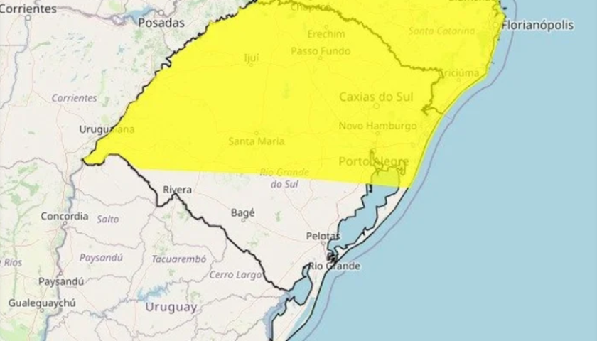 Aviso do Inmet, que inclui o Paranhana, é válido entre quinta (8) e sexta-feira (9) e prevê chuva intensa e ventos fortes, com baixo risco de danos