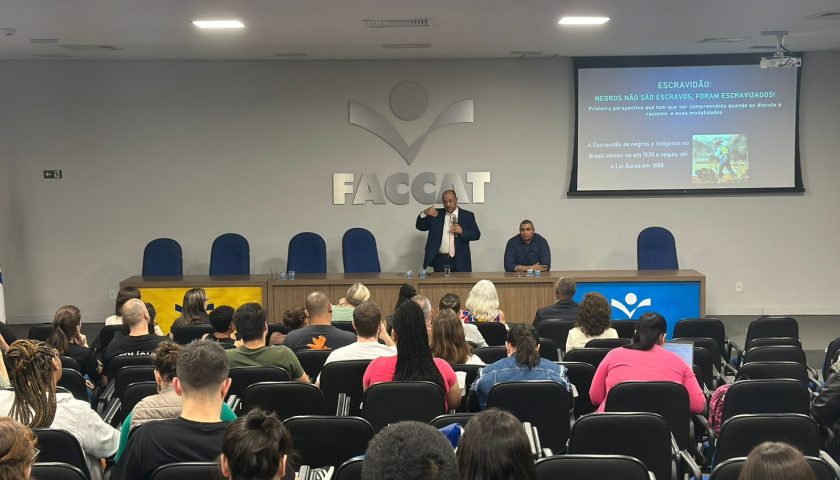 Em roda de conversa na Faccat, Orson Soares e Fernando Sodré discutiram raízes históricas do racismo, desigualdades atuais e a importância da educação e de políticas públicas permanentes para promover igualdade racial