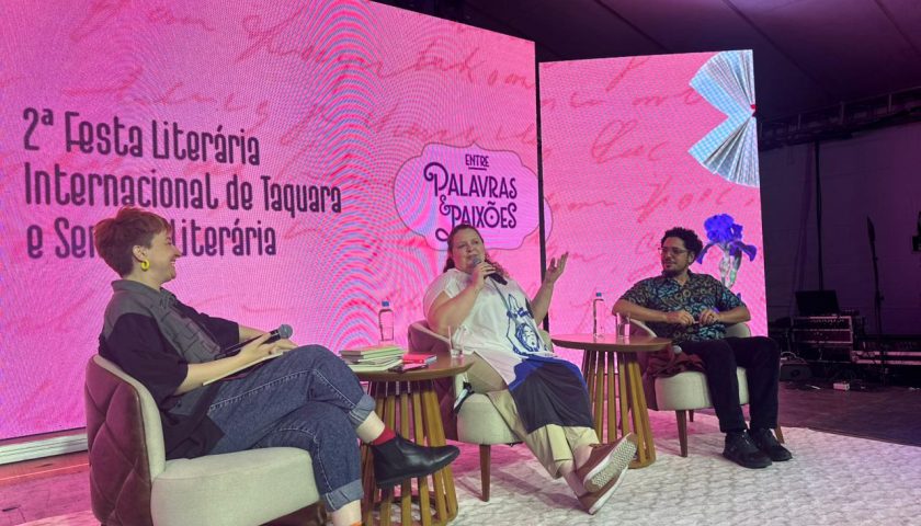 Autores destacam a força do imaginário, do afeto e das influências na literatura, em conversa mediada por Nanni Rios na abertura da festa literária