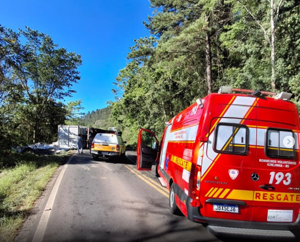 Acidente no km 64 da RS-020 deixa motorista ferido e causa interdição total; equipes de resgate estão no local