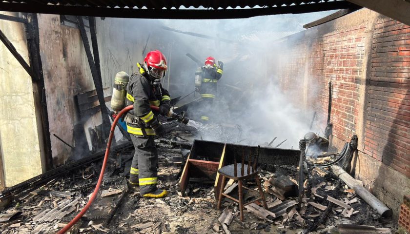 Fogo começou no começo da tarde e atingiu a lateral de uma casa no bairro Rothmann