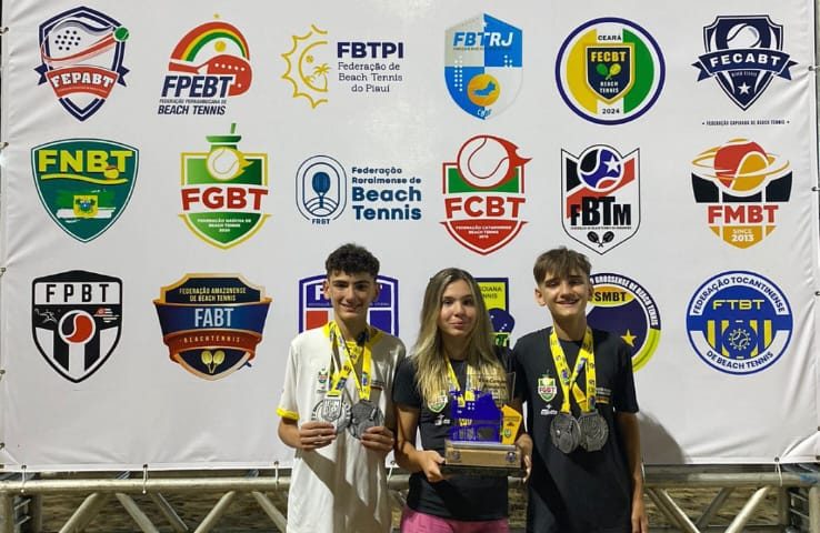 Rodrigo Raymundo, Felipe Kuhn e Martina Zimmer representaram o Rio Grande do Sul no Campeonato Brasileiro de Beach Tennis CBBT 2024, em Vitória (ES)