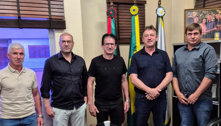 O prefeito eleito, Airton Trevizani da Rosa (Alemão), e seu vice, Adriano Bauer, foram recebidos pelo atual prefeito, Alceu Marcos Pretto (Marquinhos), na Prefeitura para um encontro de alinhamento