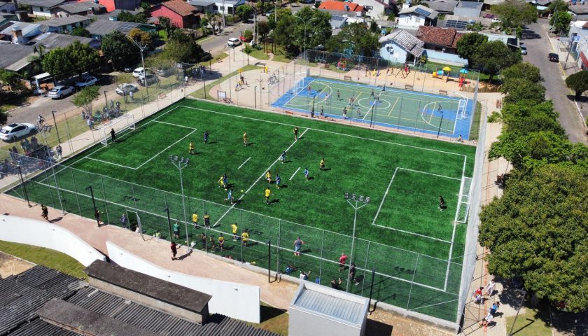 O novo espaço oferece quadra de futebol, quadra poliesportiva, pista de caminhada, academia ao ar livre, playground, chimarródromo, bicicletários, iluminação em LED e sanitários