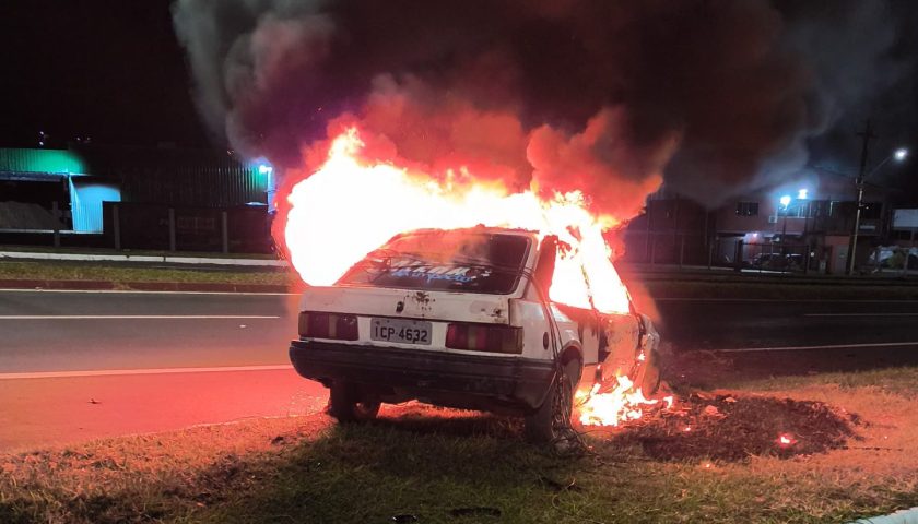 Veículo For Escort foi totalmente consumido pelas chamas na madrugada de hoje