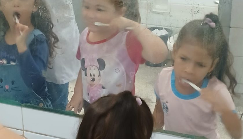 Na manhã de quinta-feira (8), as atividades foram realizadas na EMEI Paty, no bairro Santa Rosa