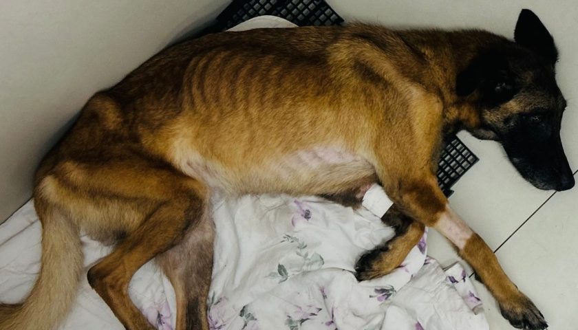 A ocorrência foi registrada em uma oficina mecânica da cidade, onde dois cães foram encontrados em condições de extrema negligência