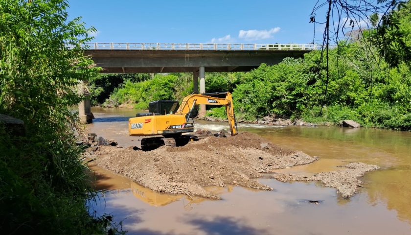 O trabalho consiste no desassoreamento e na dragagem, que é a limpeza e remoção de sedimentos acumulados no fundo do rio