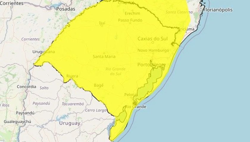 Aviso de “perigo potencial” é válido até a manhã de terça-feira; regiões do Vale do Paranhana também estão incluídas