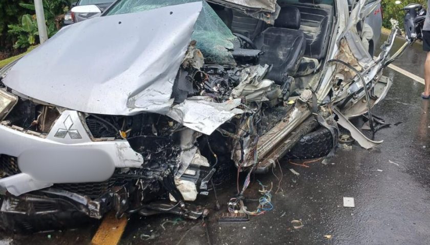 Motorista de caminhonete ficou ferida em colisão com caminhão e um carro