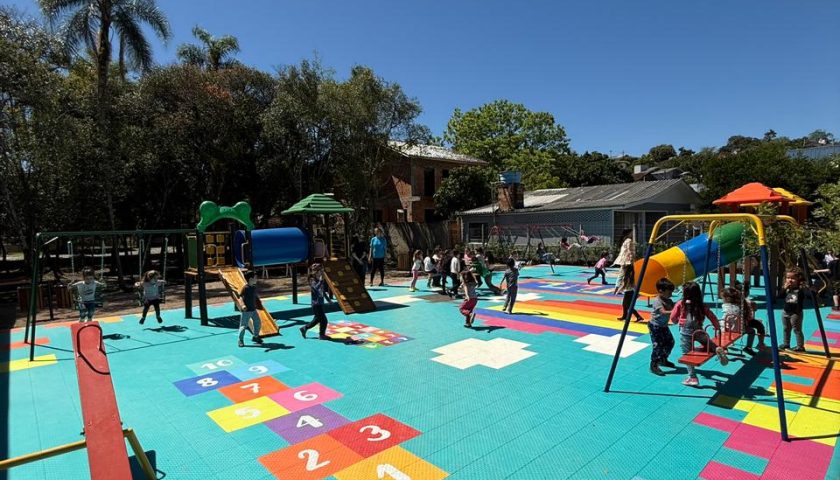 O novo espaço conta com piso modular, seis brinquedos e bancos, proporcionando um ambiente mais seguro para as crianças da escola e da comunidade
