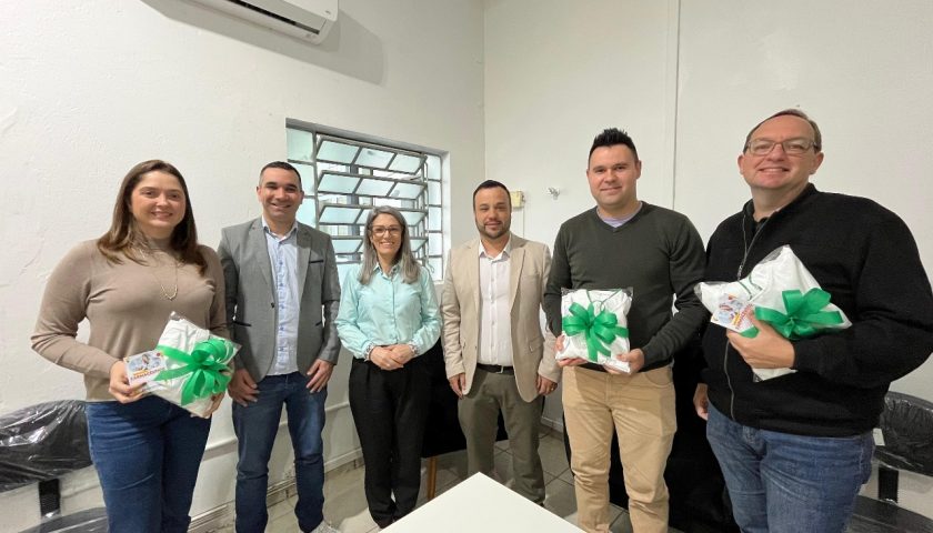 Durante o encontro os três farmacêuticos que atuam no município foram presenteados com novos jalecos personalizados