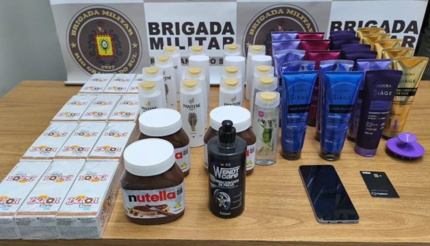 Dupla foi flagrada pela Brigada Militar com diversos produtos furtados