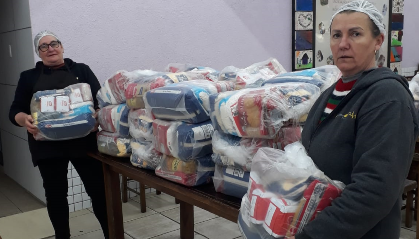 Foram doadas 33 cestas e os alimentos foram separados e armazenados
