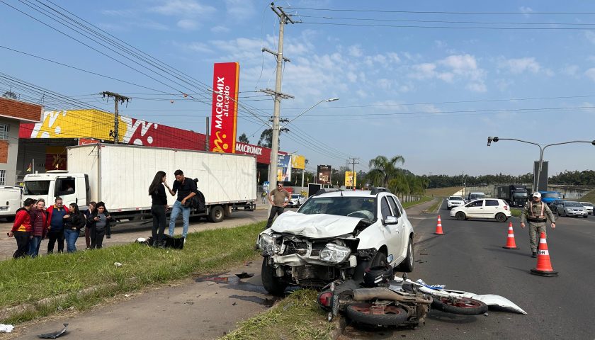 Motociclista fica ferido após colisão com caminhonete na ERS-115 em Taquara