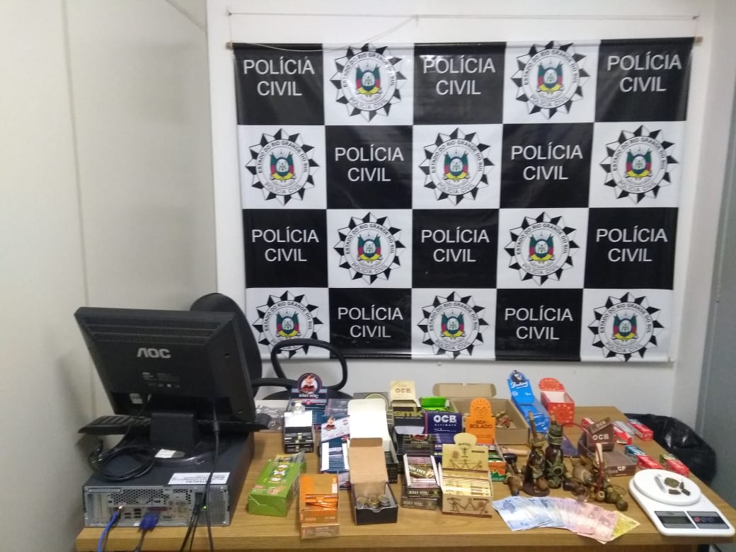 Agentes da Polícia Civil, durante o cumprimento de mandado de busca e apreensão, prenderam um indivíduo por tráfico de drogas,