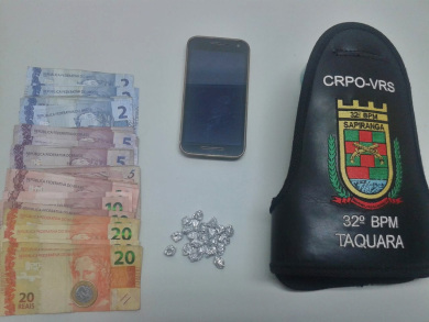 A Brigada Militar, durante ações de policiamento ostensivo, realizou a prisão de um indivíduo, por tráfico de entorpecentes, às 4h