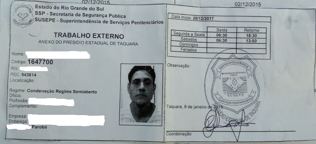 O indivíduo perdeu o documento de trabalho externo do regime semiaberto no pátio da residência que tentou furtar