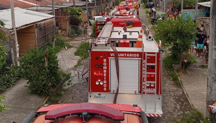 Ocorrência mobilizou bombeiros voluntários e apoio do CBMRS de Taquara na manhã deste sábado (14).
