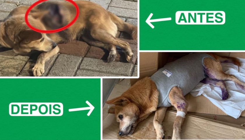 Animal foi submetido a cirurgia e se recupera; Prefeitura reforça importância da denúncia de maus-tratos