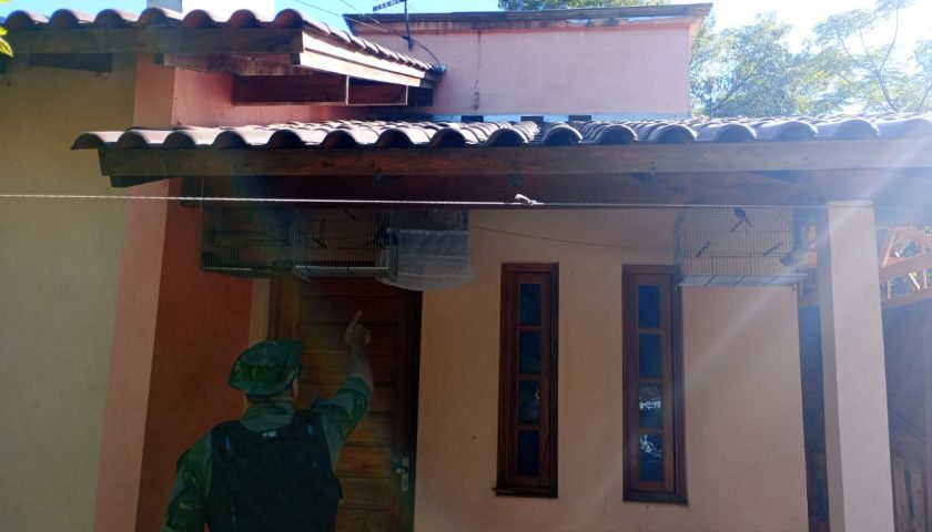 Ação ocorreu após denúncia e resultou na apreensão de três aves mantidas em gaiolas na área externa de uma residência