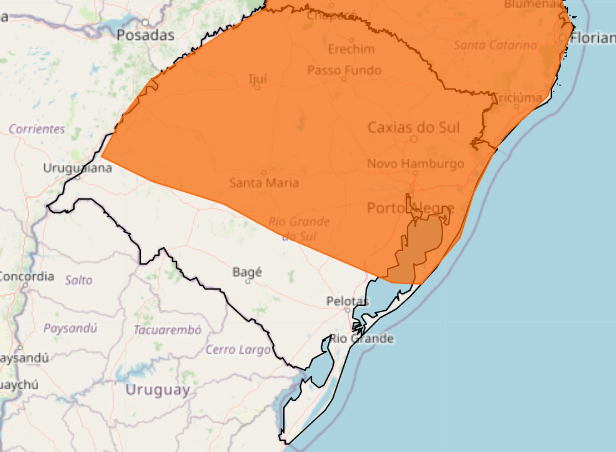 De acordo com o aviso, são esperadas chuvas com intensidade entre 20 e 30 mm/h ou até 50 mm/dia, acompanhadas de ventos fortes com velocidades entre 40 e 60 km/h.