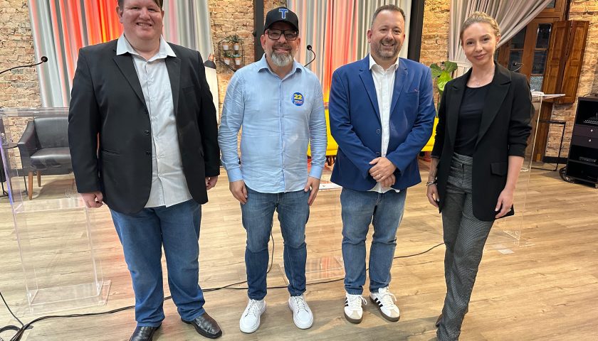 Evento teve a participação dos candidatos Marcos Vinicius Carniel (PDT) e Tito Lívio Jaeger Filho (PL).
