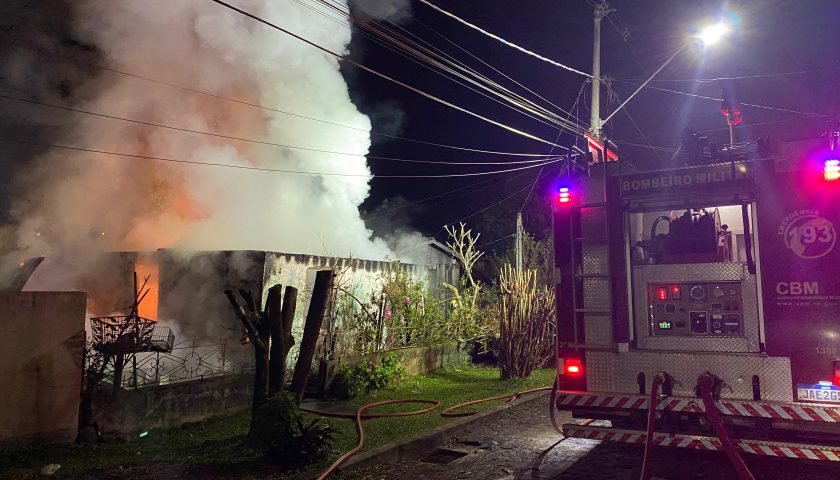 Fogo consumiu imóvel no bairro Medianeira neste sábado (31).