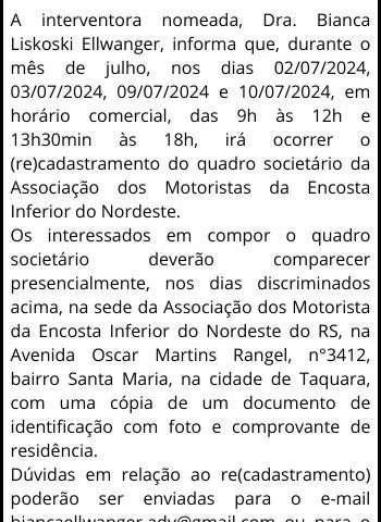 Read moreEdital | Associação dos Motoristas