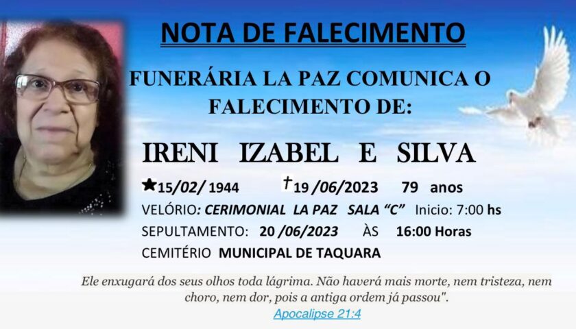 Read moreFalecimento | Ireni Izabel e Silva