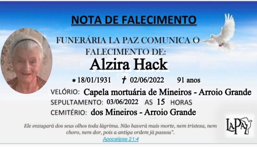 Falecimento | Alzira Hack