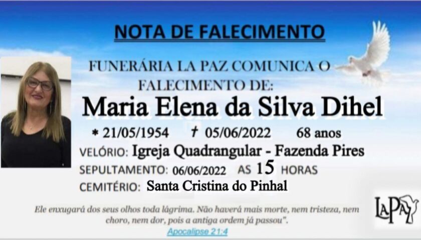 Falecimento | Maria Elena da Silva Dihel