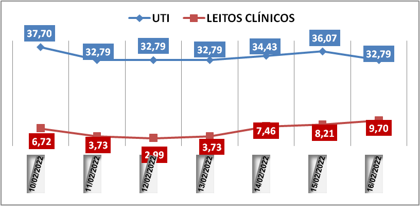 Read moreOcupação das UTIs na região fica em 32,7% nesta quarta-feira (16); leitos clínicos estão em 9,7%