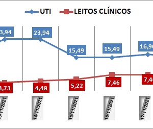 Read moreOcupação das UTIs na região fica em 16,9% nesta quarta-feira (17); leitos clínicos estão em 7,4%