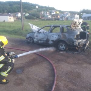 Automóvel sofreu incêndio no bairro Santa Rosa.