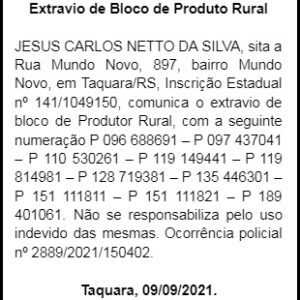 Extravio | Jesus Carlos Netto da Silva
