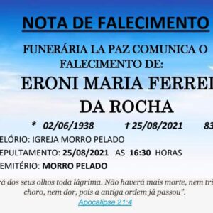 Falecimento de Eroni Maria Ferreira da Rocha.