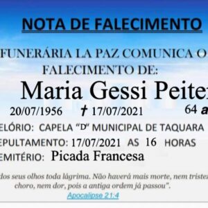 Falecimento de Maria Gessi Peiter.