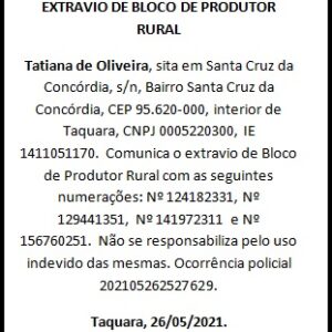 Read moreExtravio de Bloco de Produtor Rural | Tatiana de Oliveira