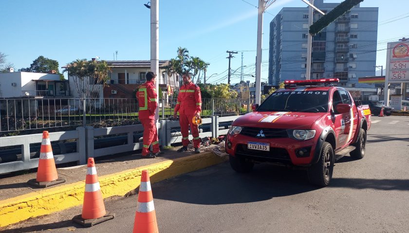 Fio de aço sob ponte mobiliza Corpo de Bombeiros em Igrejinha