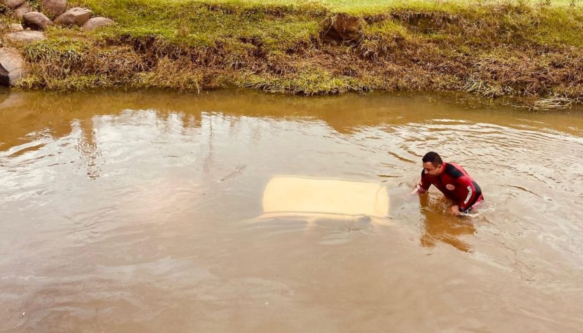 Veículo caiu no Arroio Grande, em Entrepelado; ninguém se feriu no acidente