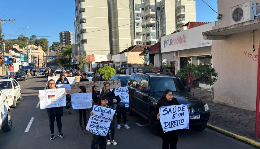 Grupo percorreu a rua Júlio de Castilhos neste sábado (31), exigindo pediatras, agilidade em exames e mais especialistas; prefeitura anunciou reforço médico e encontro com representantes