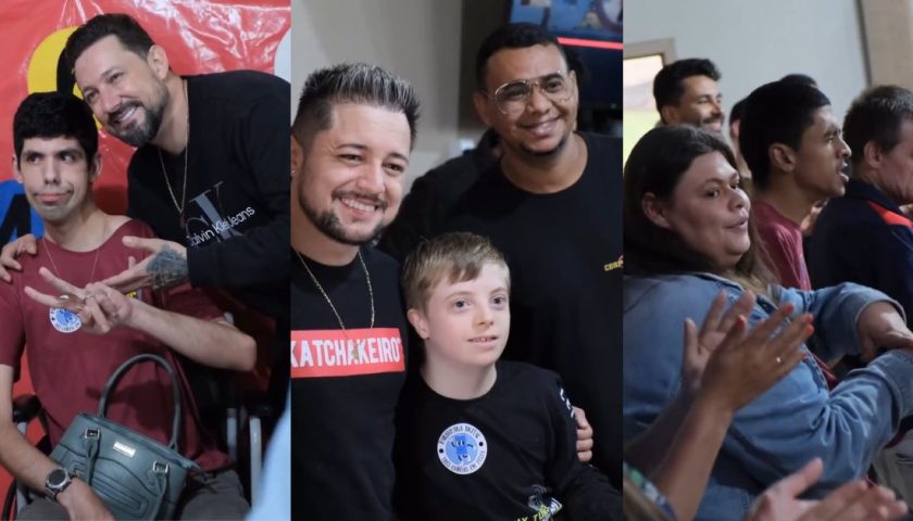 Visita surpresa ocorreu horas antes da apresentação da banda no Três Coroas em Festa e reforça a valorização do projeto Clipe Inclusivo