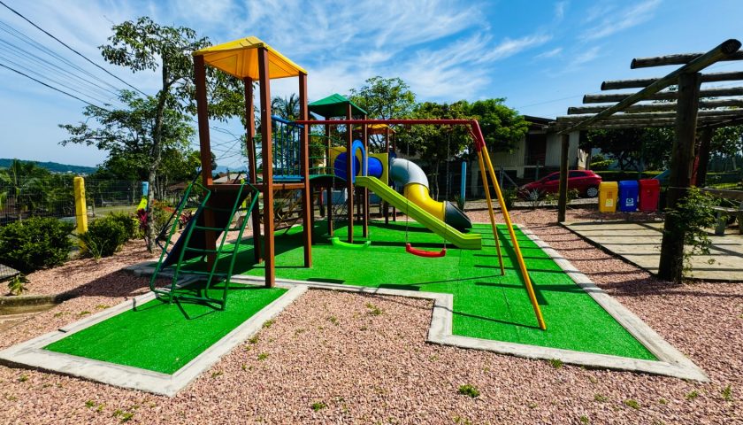 Espaço de lazer recebeu um novo playground mais seguro para as crianças.