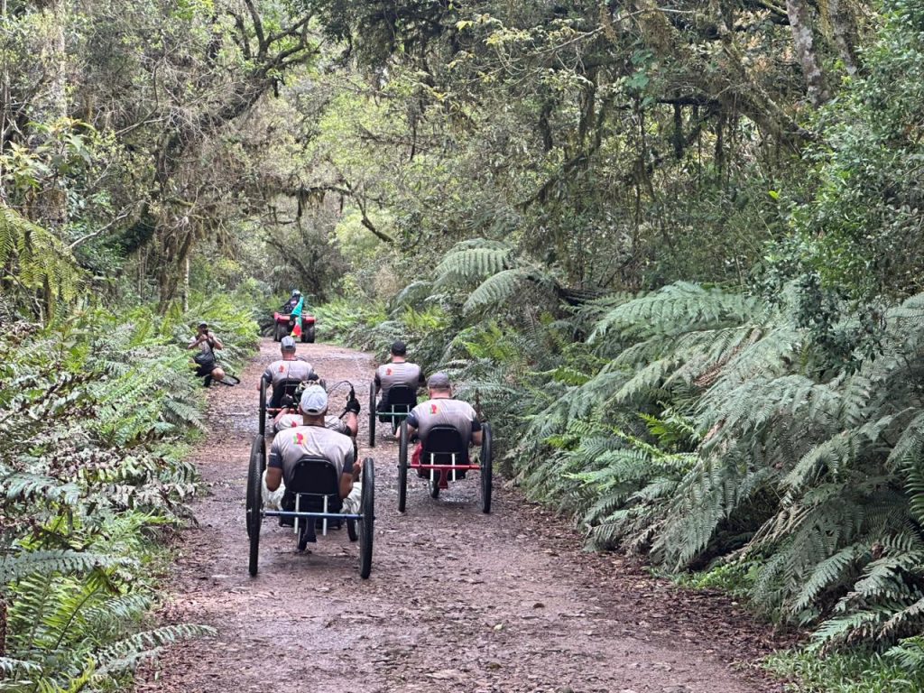 Feiten detalhou: “Nunca tínhamos conseguido trazer pessoas com deficiência para pedalar nos cânions. Trouxemos as handbikes, que fazem parte do patrimônio da associação, e emprestamos para nossos amigos e parceiros. Contamos com todo o apoio da administração do parque e da Secretaria de Turismo de Cambará, o que tornou possível essa aventura no Parque Nacional dos Aparados da Serra”.