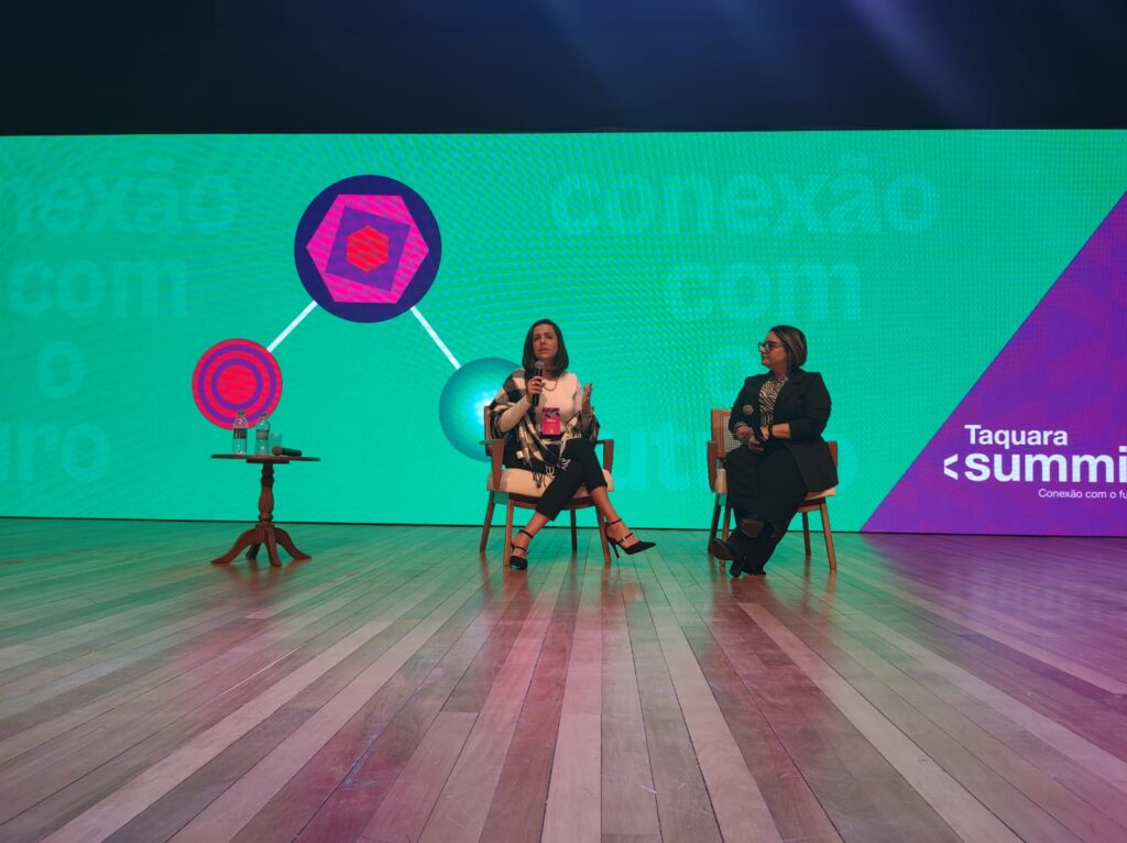 Fundador da Besouro de Fomento Social, Vinicius Mendes; CEO do Instituto Ascendendo Mentes, Nina Cardoso. Mediado por Josemar Demenech, analista do Sebrae.