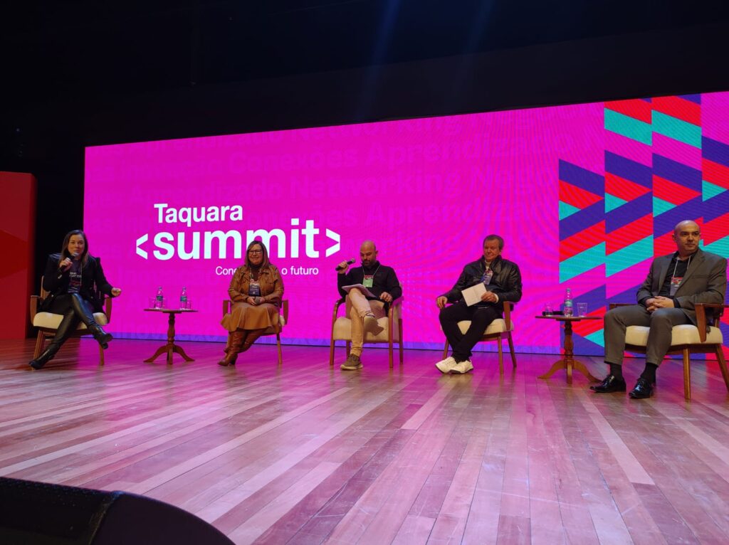 Além dos expositores distribuídos ao longo do hall de entrada do auditório principal, o 1º Taquara Summit iniciou às 9h, com a palestra “O futuro que estamos construindo juntos”.