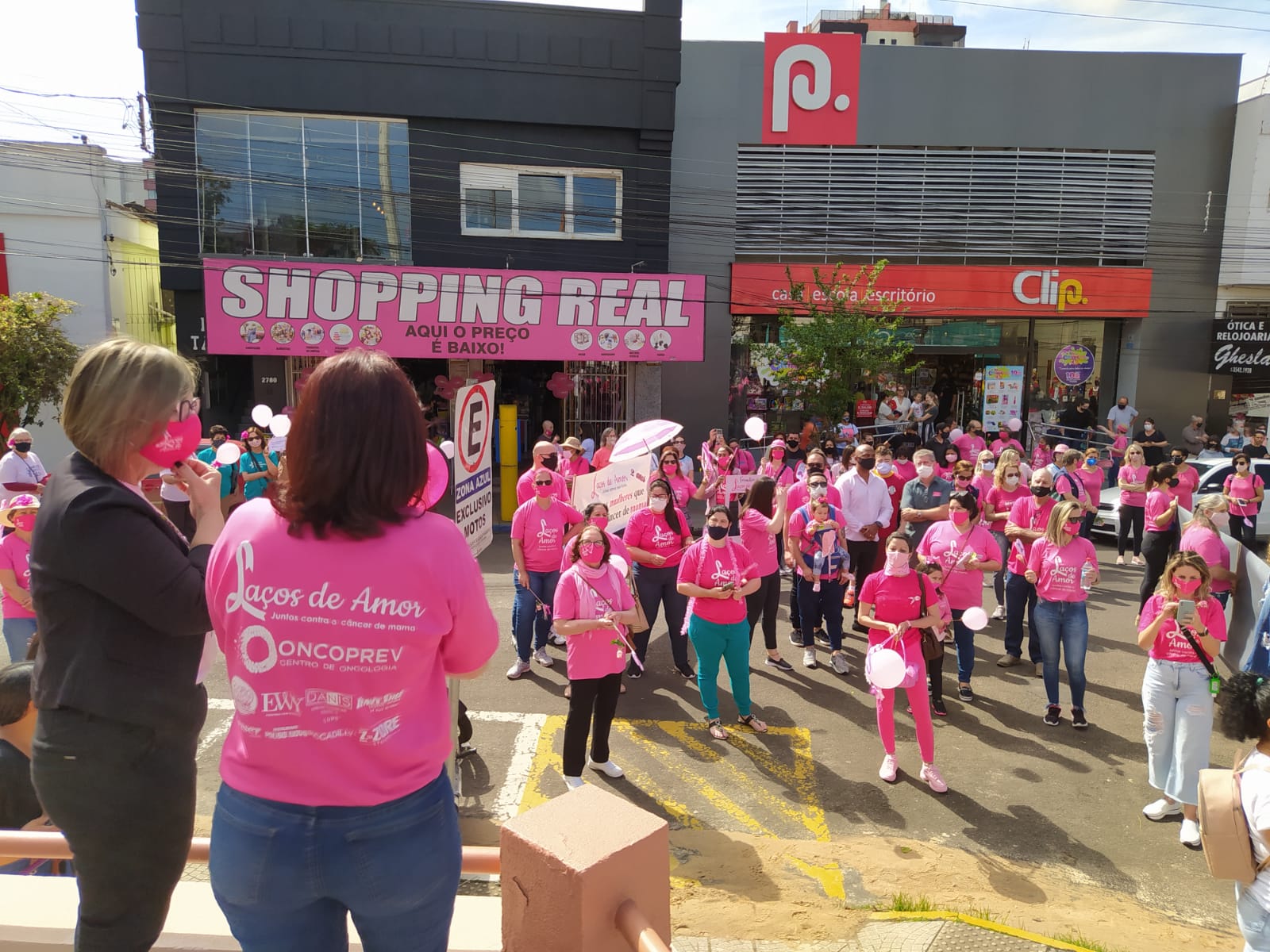 Ao chegarem à praça, a Unidade Móvel da Saúde, da Prefeitura de Taquara, aguardava os participantes onde ocorreu o atendimento de profissionais, orientando sobre o câncer de mama e um mutirão de consultas represadas em ginecologia não oncológica no Hospital Bom Jesus. Foram disponibilizadas 30 consultas e, caso haja indicação de cirurgia, esta será realizada ao longo do mês.