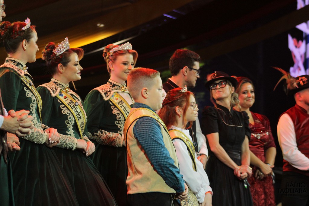 O evento contou com a presença da corte oficial, da diretoria da Amifest, de autoridades municipais e regionais, além de centenas de voluntários e visitantes. A cerimônia também foi embalada por apresentações culturais da Associação Cultural Kirchleinburg e da Orquestra Municipal Huberto Konrath, que encantaram o público e reforçaram o clima de tradição e pertencimento.