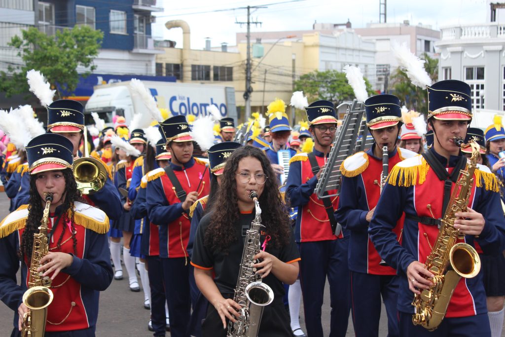 A caminhada teve início por volta das 9h30, acompanhada pelas bandas marciais das escolas municipais Theóphilo Sauer, Getúlio Vargas e Rosa Elsa Mertins, que executaram canções como ‘O Descobridor dos Sete Mares’, de Tim Maia. Os participantes, todos trajando rosa, a cor símbolo da campanha, seguiram pela rua principal da cidade com faixas e cartazes.